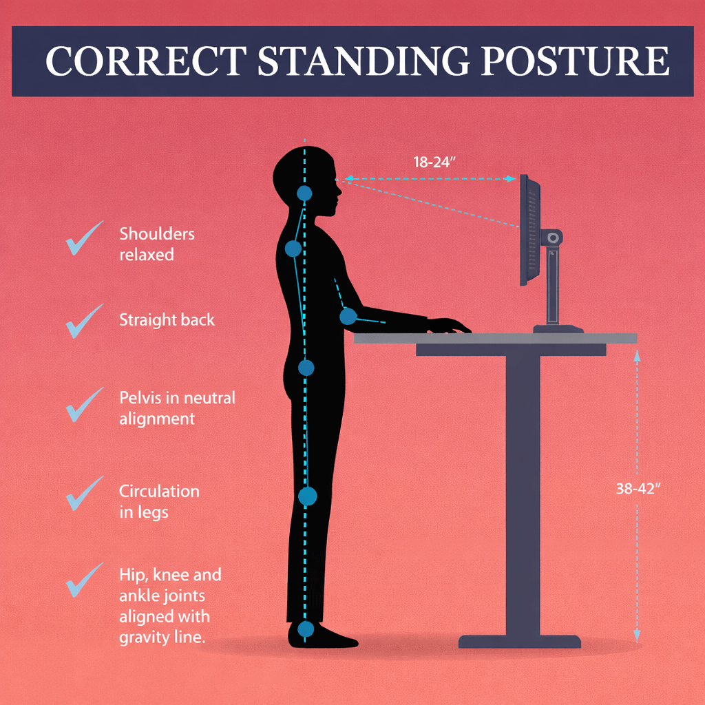 טעות לחשוב שעבודה בעמידה עדיפה תמיד על פני הישיבה. בפועל, גם עמידה ממושכת אינה תנוחה אידיאלית לגוף. עמידה ממושכת ללא שינויי תנוחות במהלך יום העבודה יוצרת עומס סטטי על השרירים, בעיקר באזור הגב התחתון, הרגליים והברכיים.